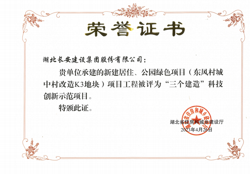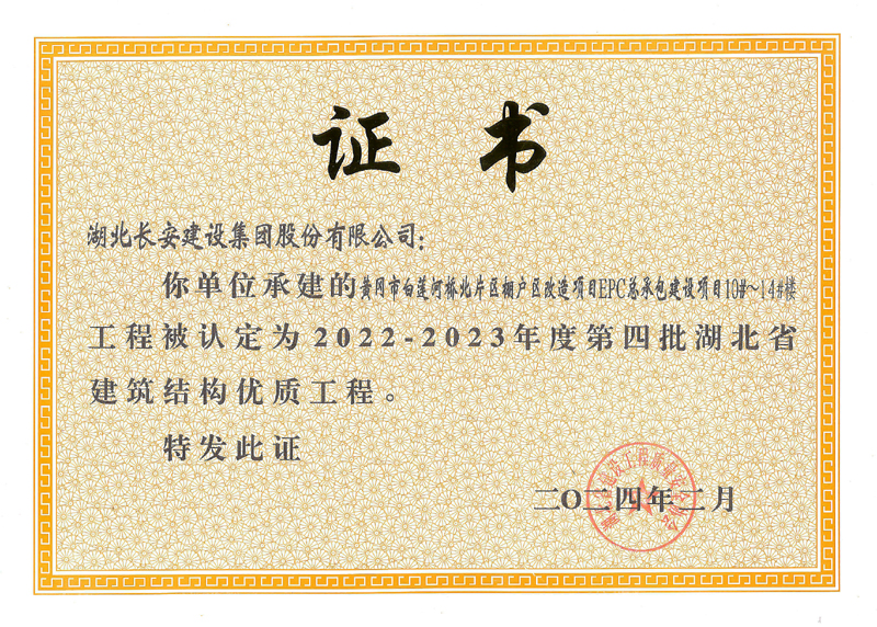 • 2025-11-25 湖北長安建設(shè)9項(xiàng)工程獲評(píng)省(楚天)優(yōu)質(zhì)工程