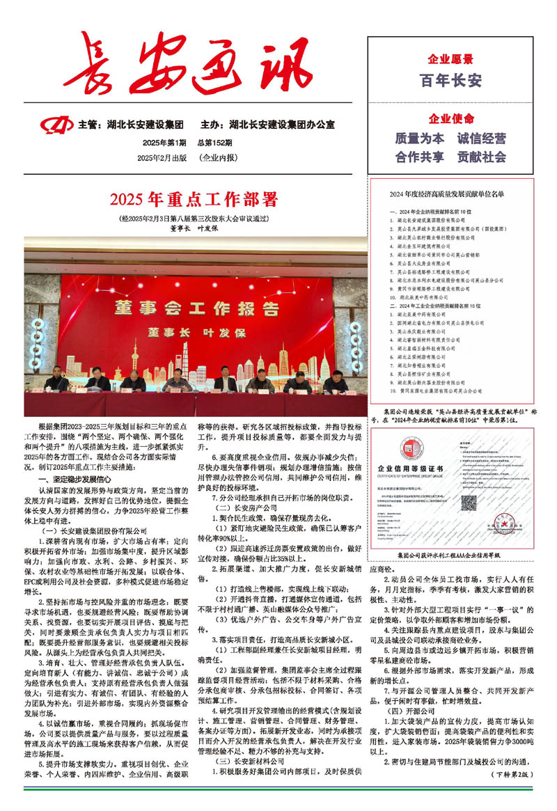 • 2025-11-03 長安建設(shè)集團(tuán)聘任徐正新同志為湖北長安建設(shè)集團(tuán)股份有限公司總經(jīng)理、余招剛同志為英山縣長安房地產(chǎn)開發(fā)有限公司總經(jīng)理